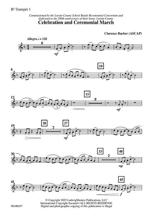 "Celebration and Ceremonial March - Bb Trumpet 1" Sheet Music by Clarence Barber