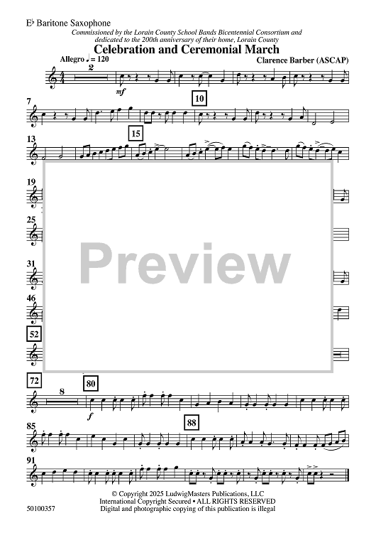 "Celebration and Ceremonial March - Eb Baritone Saxophone" Sheet Music by Clarence Barber