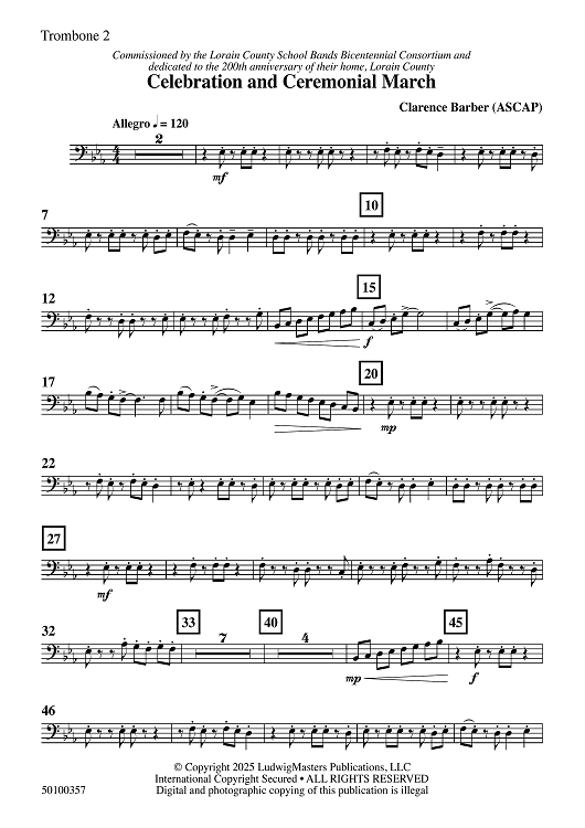 "Celebration and Ceremonial March - Trombone 2" Sheet Music by Clarence Barber