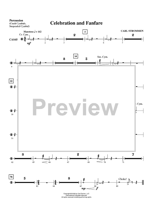 Digital Sheet Music for Celebration And Fanfare - Percussion by Carl Strommen scored for Orchestra; id:407022