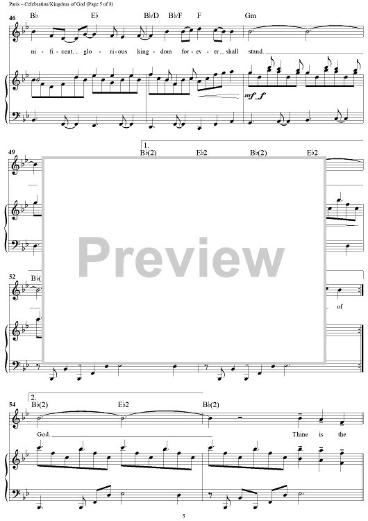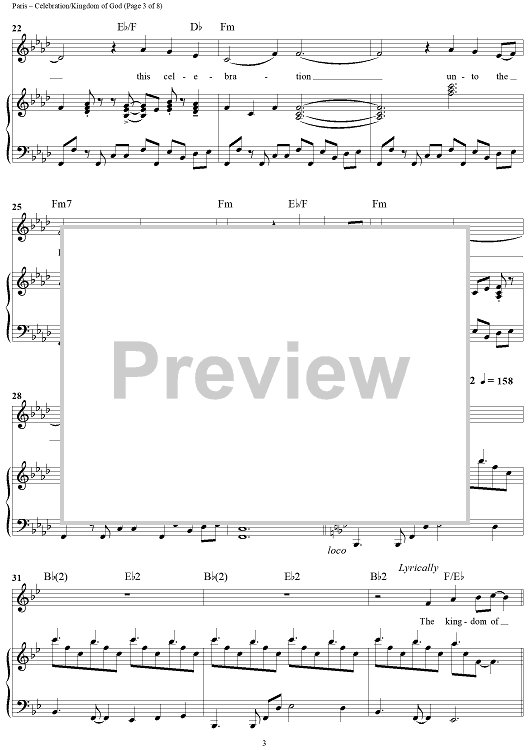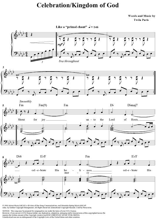 Digital Sheet Music for Celebration / Kingdom of God by Twila Paris scored for Piano/Vocal/Chords; id:165109