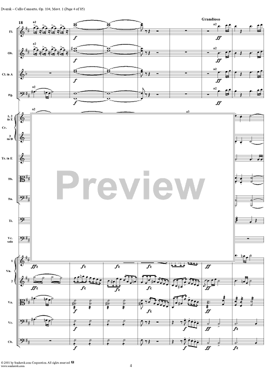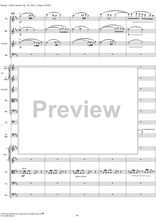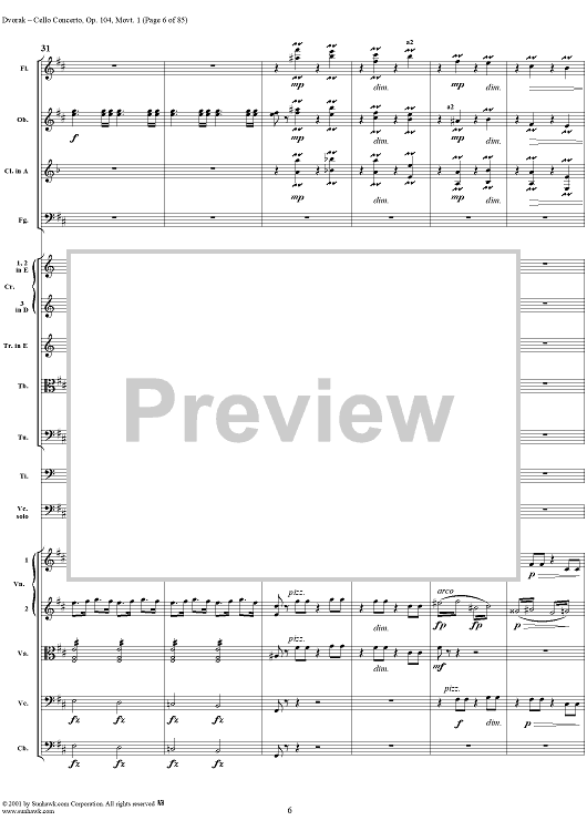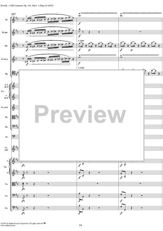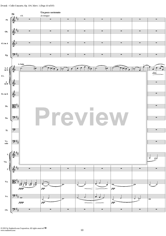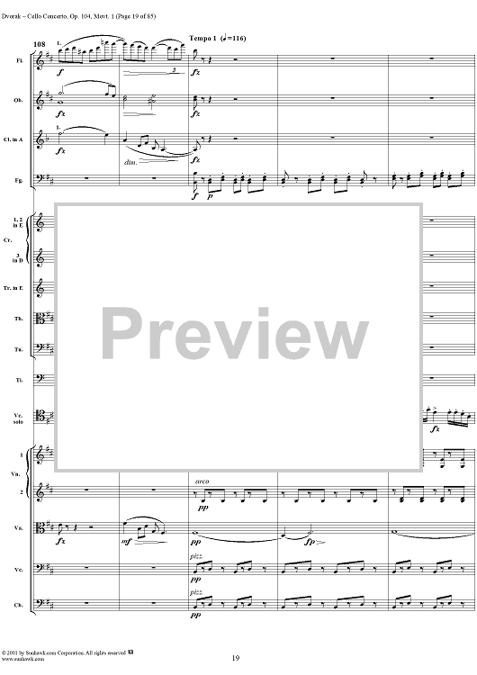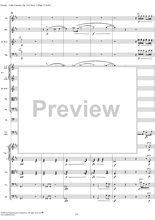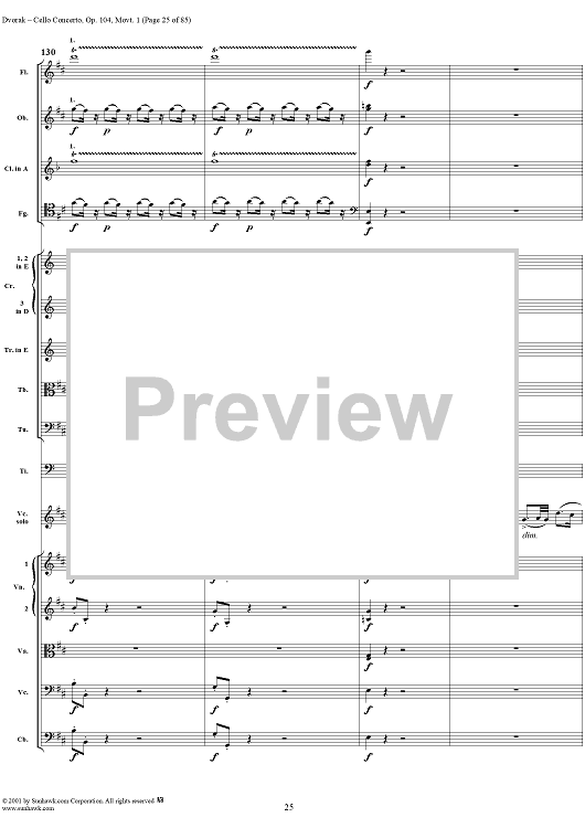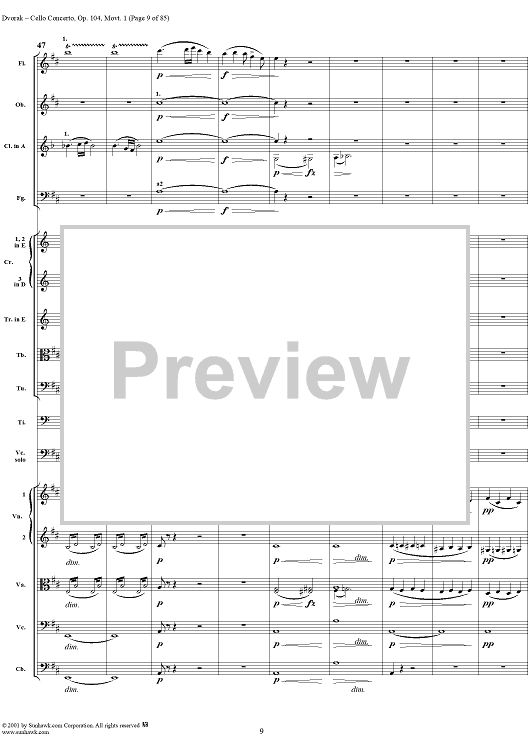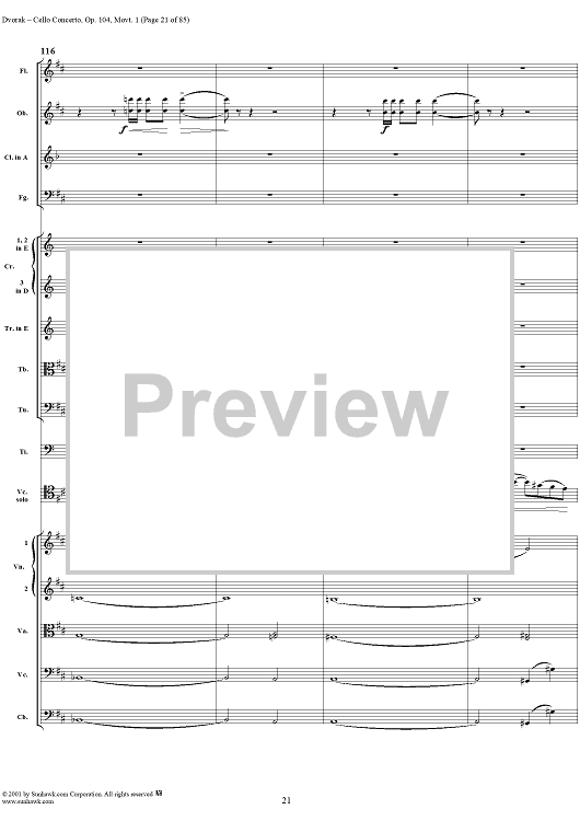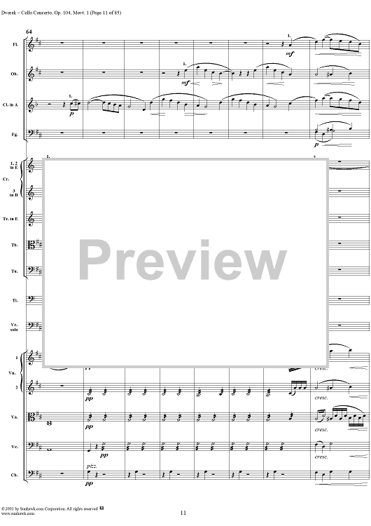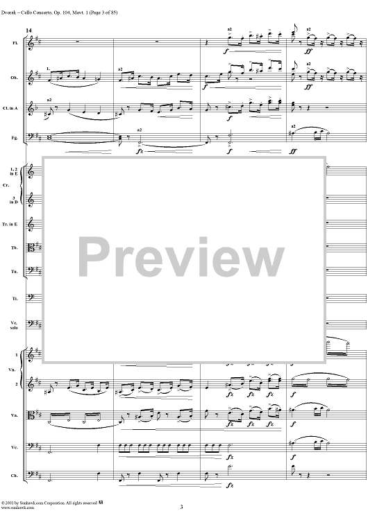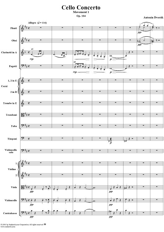 Digital Sheet Music for Cello Concerto in B Minor, Op. 104, B191, Movement 1 - Full Score by Antonín Dvorák scored for Orchestra; id:270812