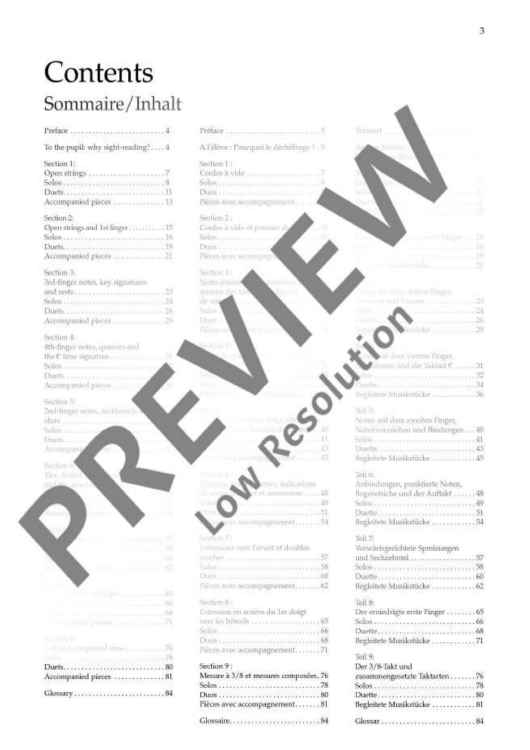 * An approach based on self-learning and recognition of rhythmic and melodic patterns * Original tunes rather than abstract sight-reading exercises * 237 carefully graded pieces in a range of musical styles * Nine sections ranging from open strings to extensions and slurs * Each section concludes with a set of duets and accompanied pieces for practice of ensemble sight-reading * Tunes progress to all key signatures up to four sharps and three flats * Preliminary towards grade 4