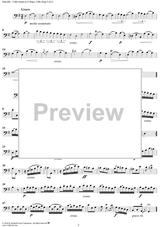 "Cello Sonata in G Major - Cello" Sheet Music by Benedetto Marcello