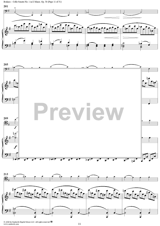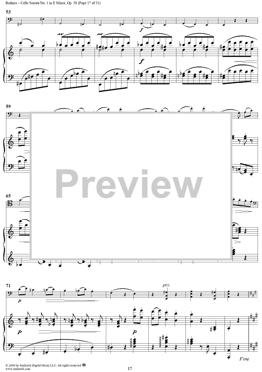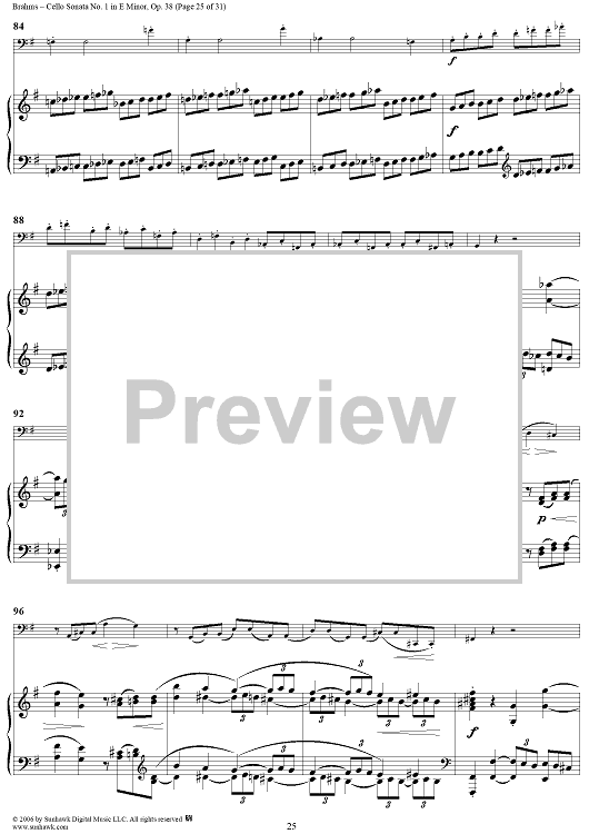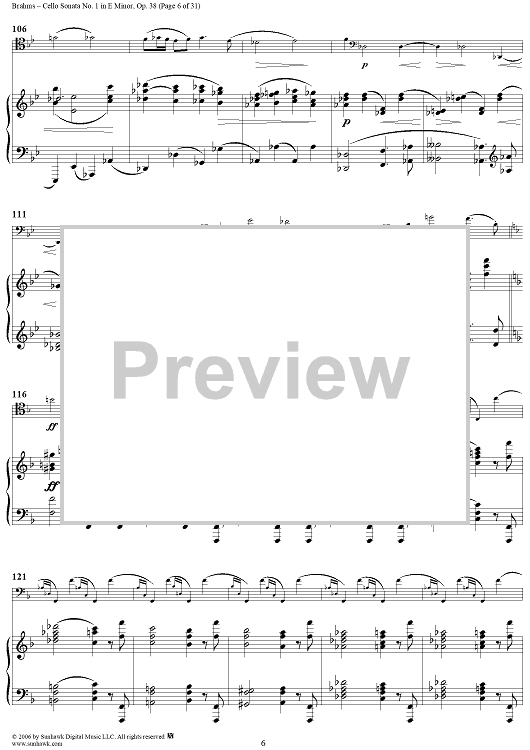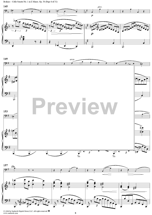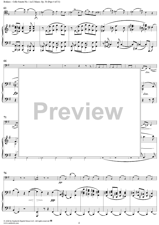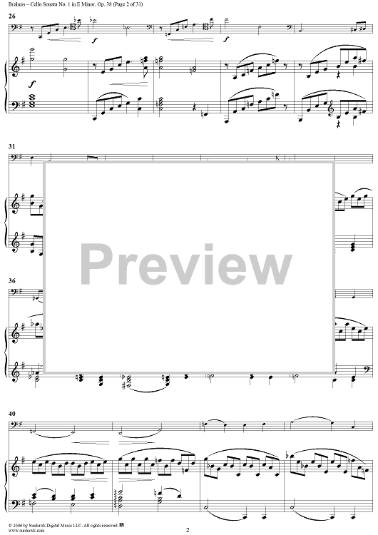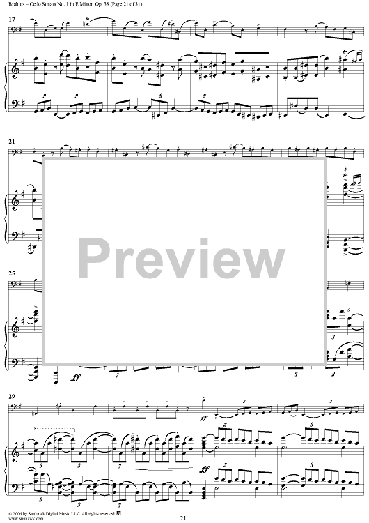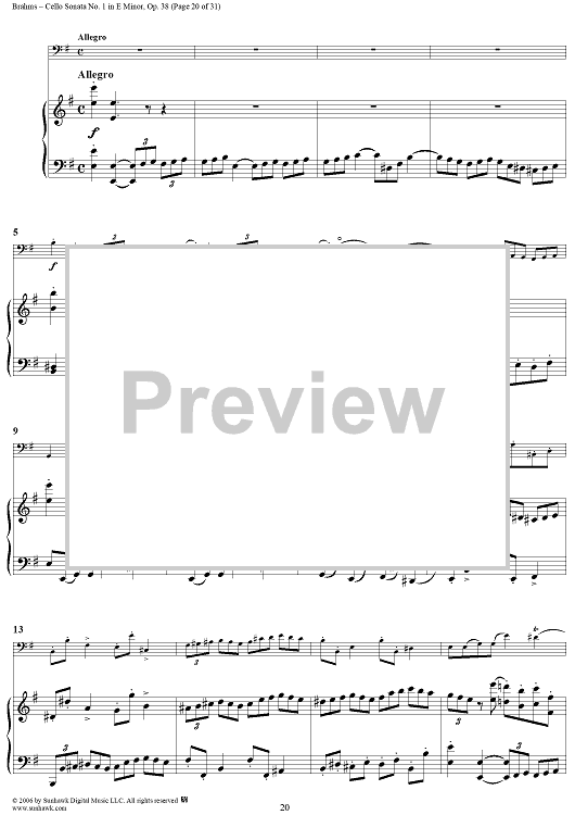 Digital Sheet Music for Cello Sonata No. 1 in E Minor - Piano Score by , Johannes Brahms scored for Cello/Piano; id:317965