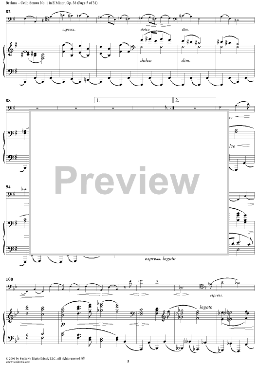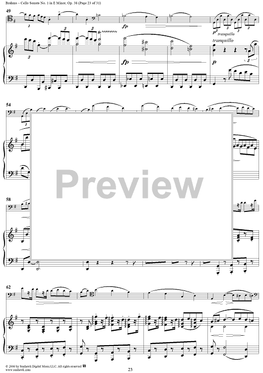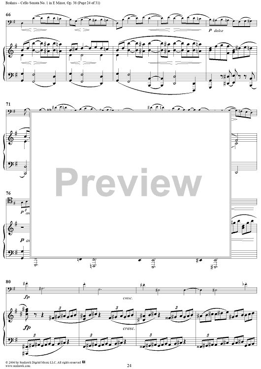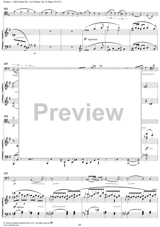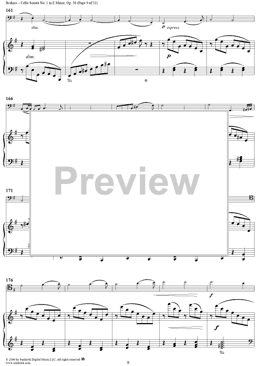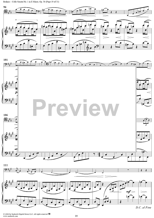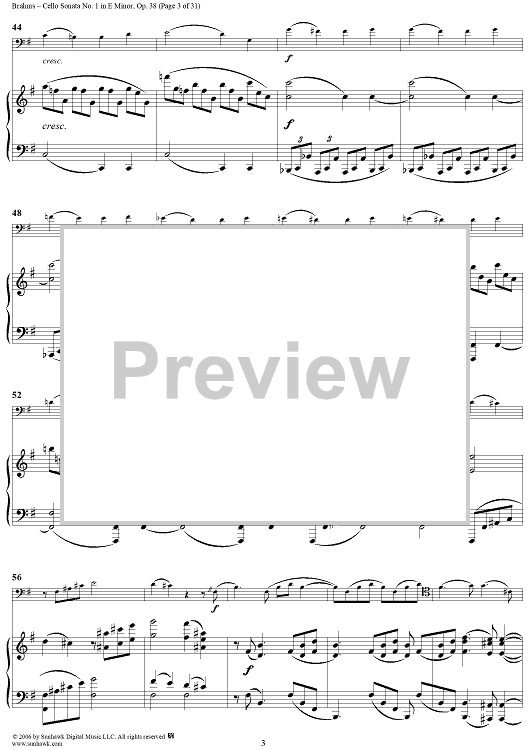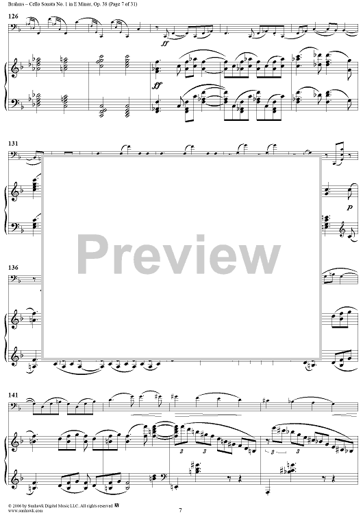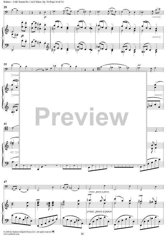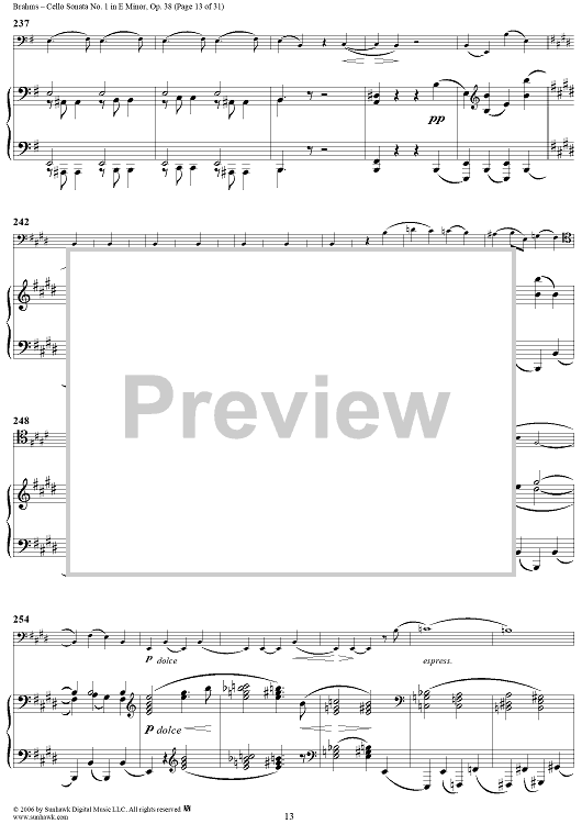 Digital Sheet Music for Cello Sonata No. 1 in E Minor - Piano Score by , Johannes Brahms scored for Cello/Piano; id:317965