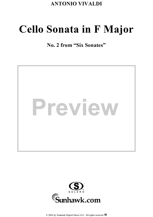 "Cello Sonata No. 2 in F Major, RV41 - Continuo" Sheet Music by Antonio Vivaldi