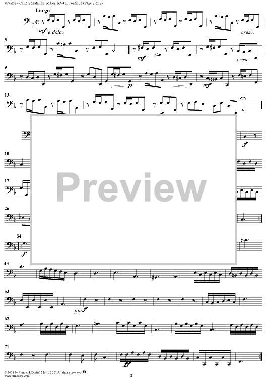 Digital Sheet Music for Cello Sonata No. 2 in F Major, RV41 - Continuo by Antonio Vivaldi scored for Cello/Continuo/Piano; id:296717