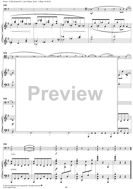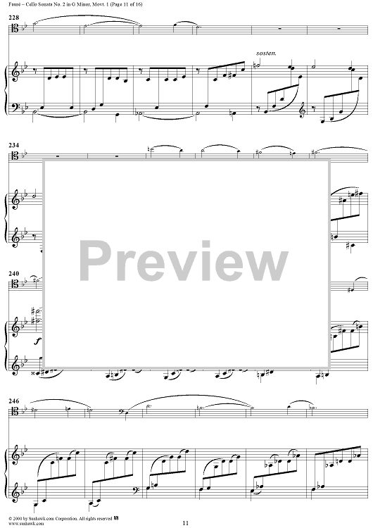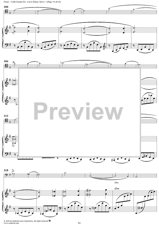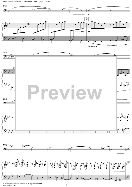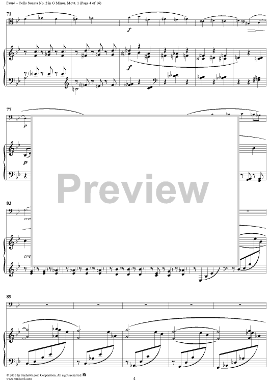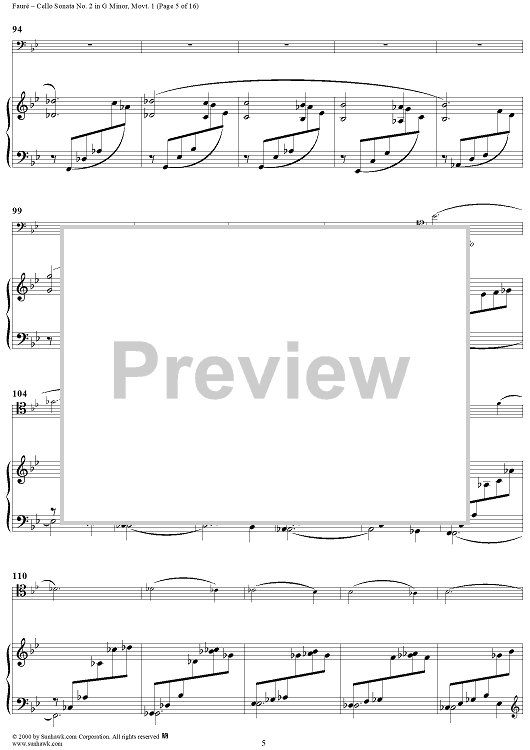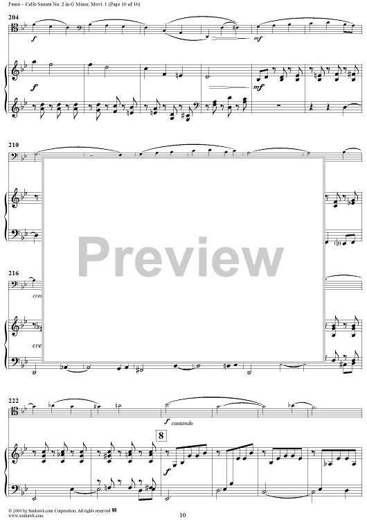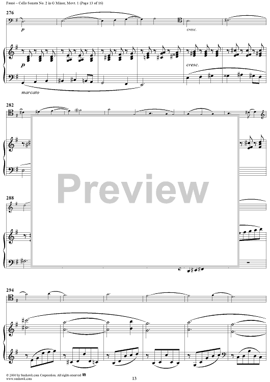 Digital Sheet Music for Cello Sonata No. 2 in G Minor, Movement 1 - Piano Score by Gabriel Fauré scored for Cello/Piano; id:269761