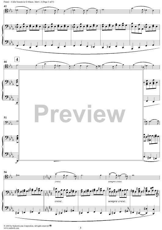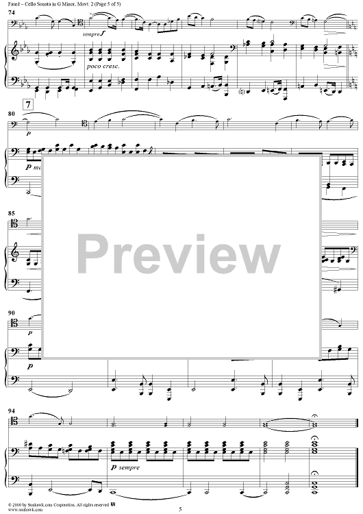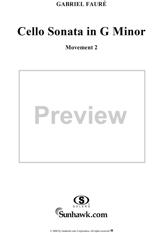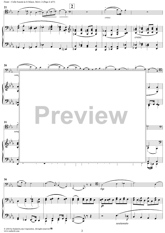 Digital Sheet Music for Cello Sonata No. 2 in G Minor, Movement 2 - Piano Score by Gabriel Fauré scored for Cello/Piano; id:270055