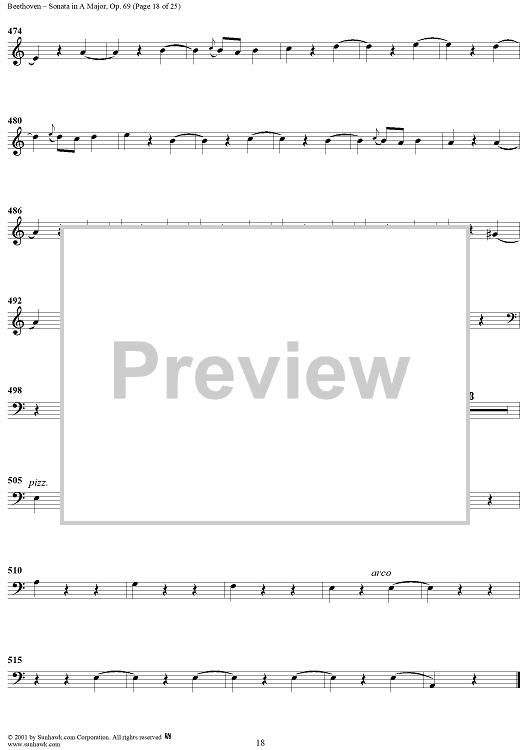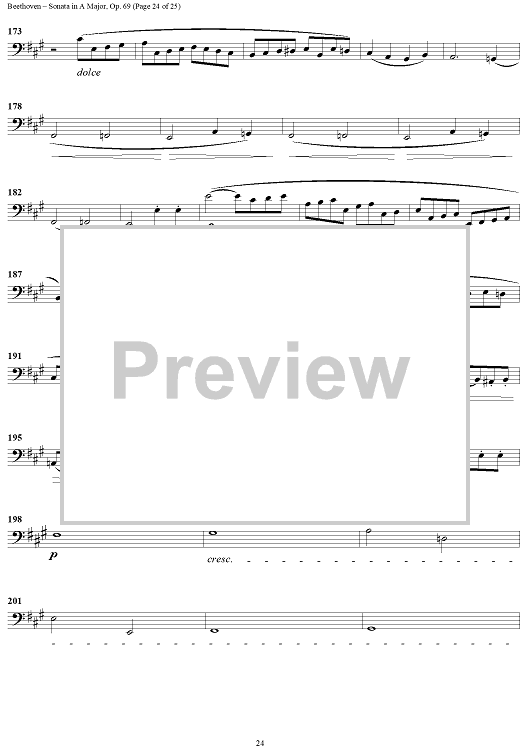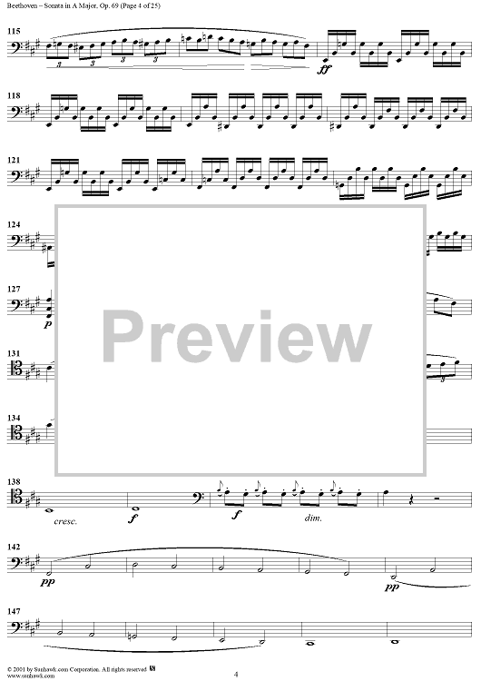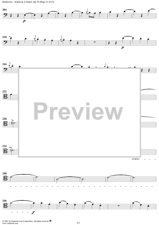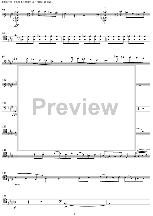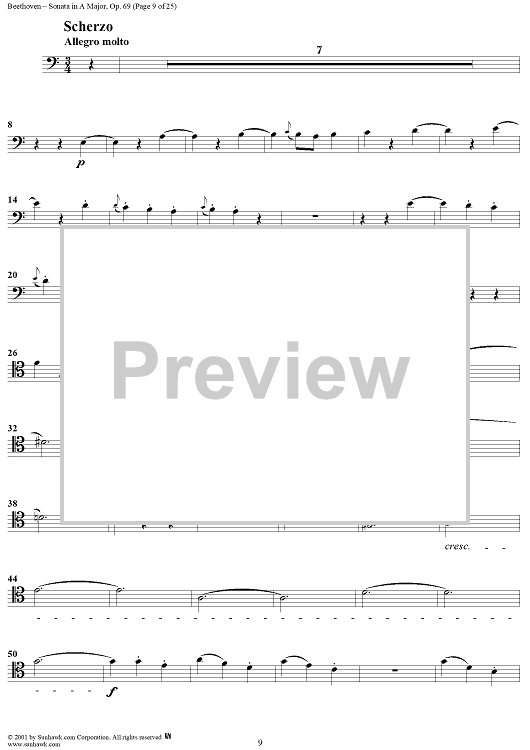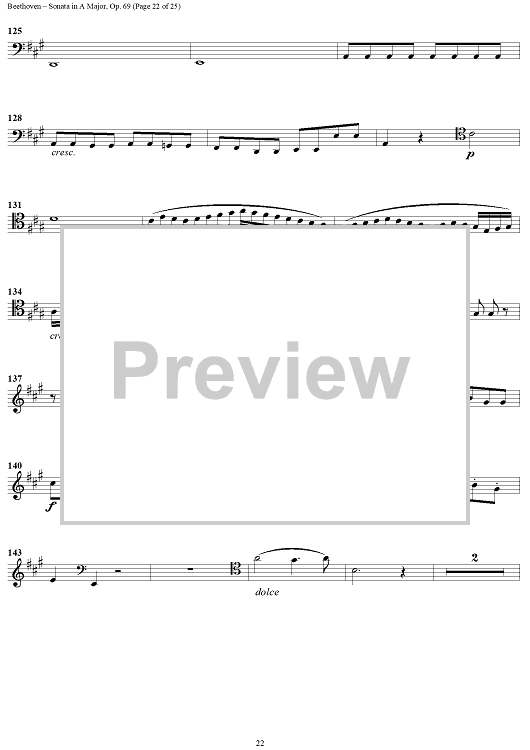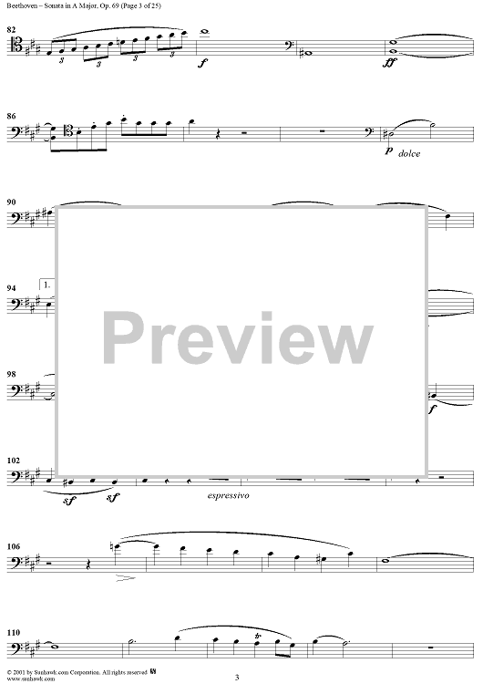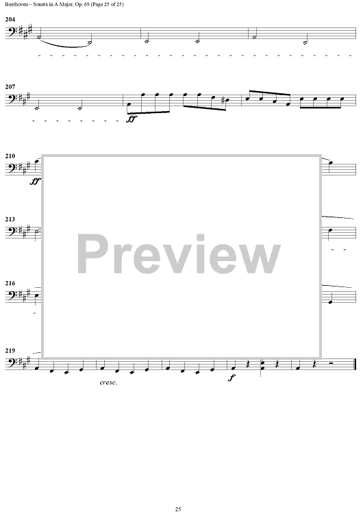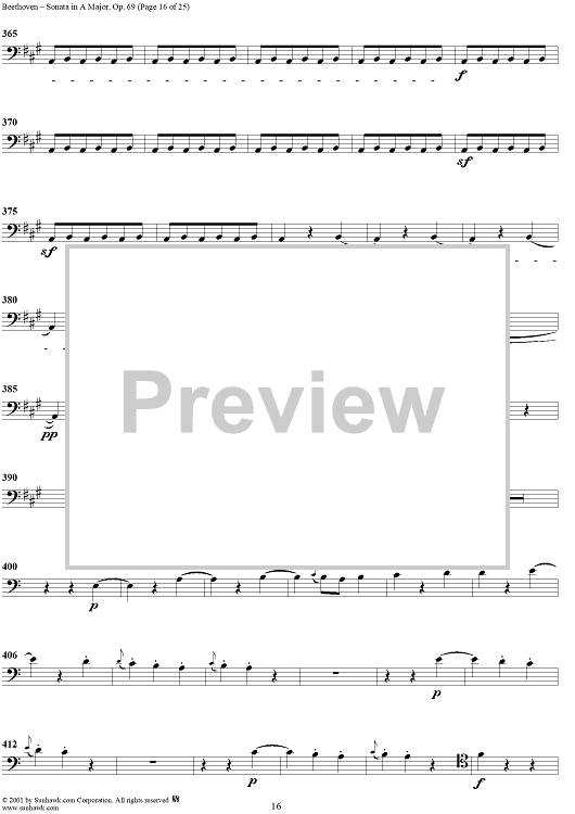 Digital Sheet Music for Cello Sonata No. 3 in A Major, Op. 69 - Cello by Ludwig van Beethoven scored for Cello/Piano; id:309097