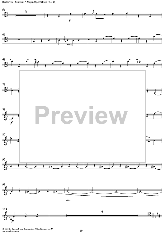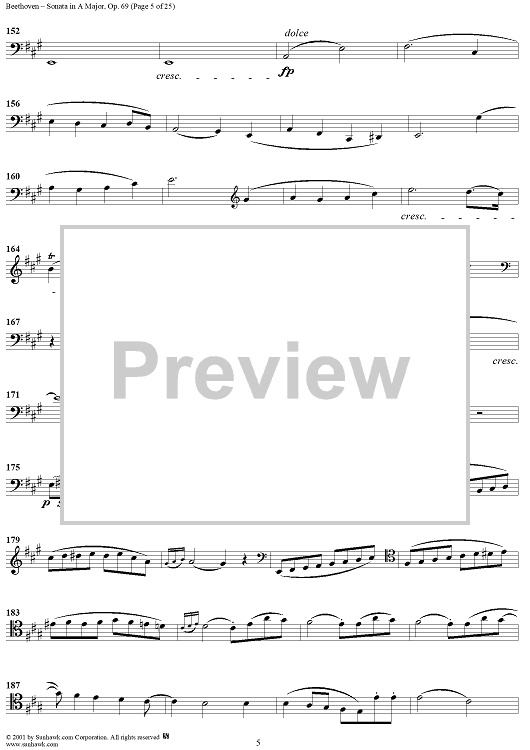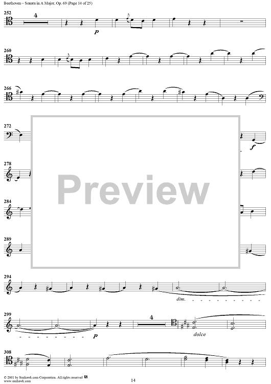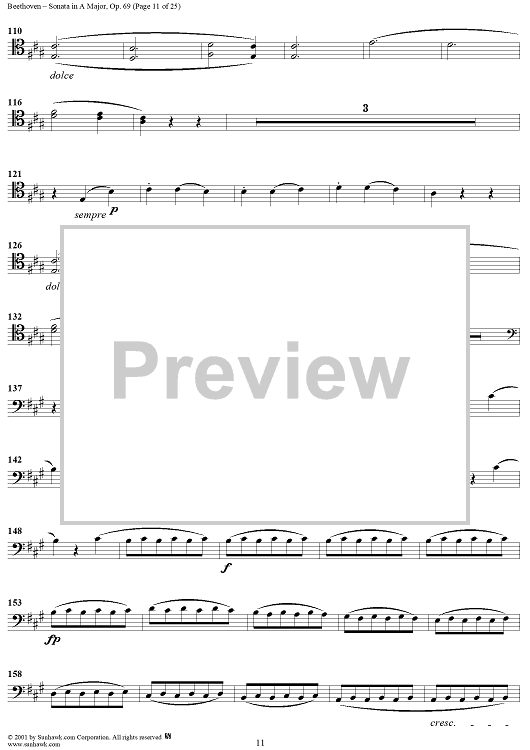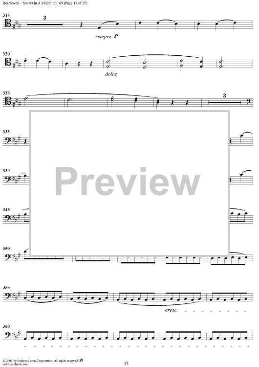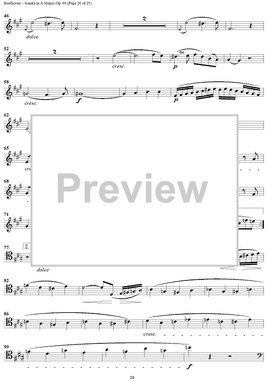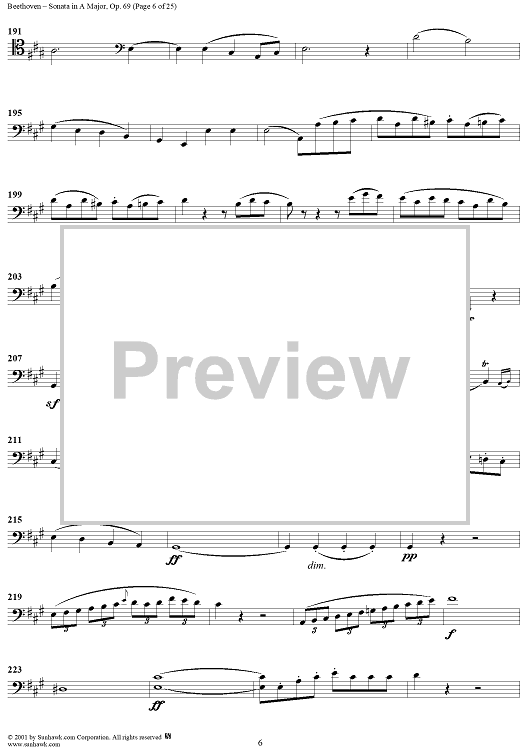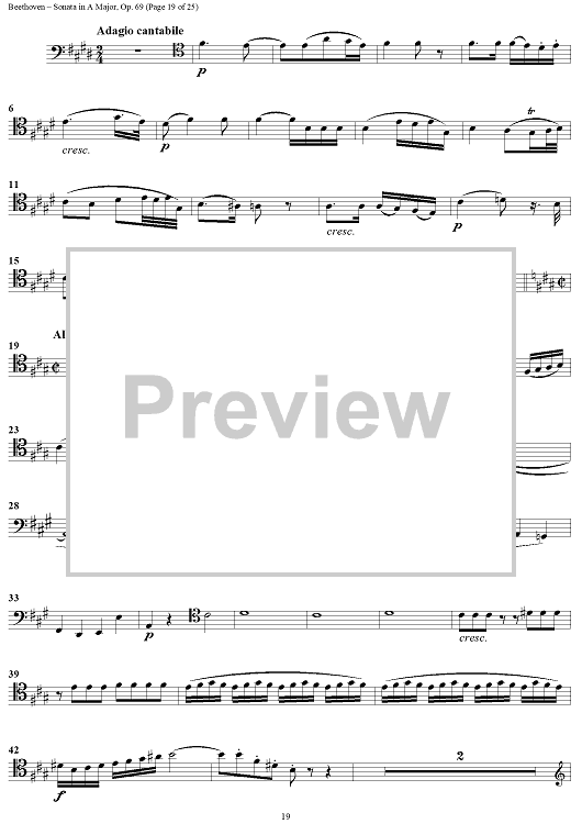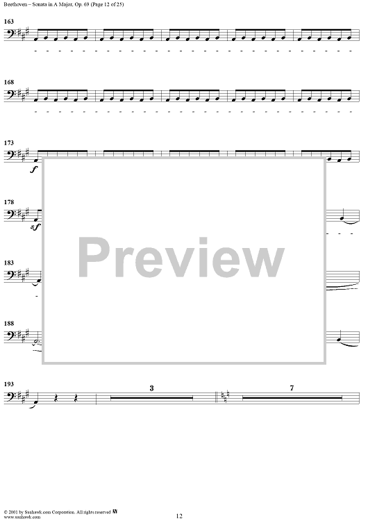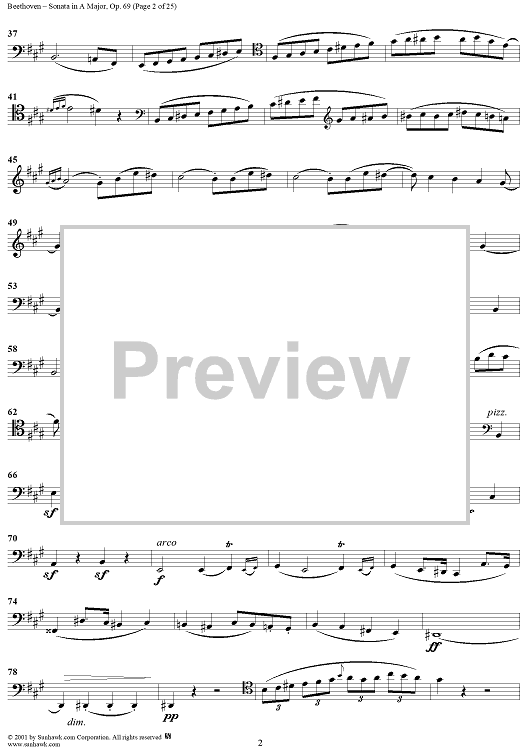 Digital Sheet Music for Cello Sonata No. 3 in A Major, Op. 69 - Cello by Ludwig van Beethoven scored for Cello/Piano; id:309097