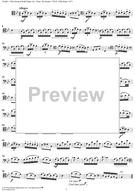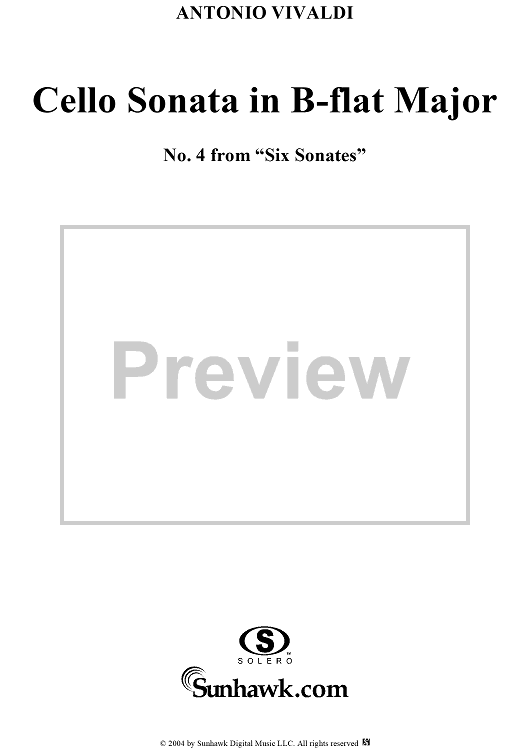 Digital Sheet Music for Cello Sonata No. 4 in B-flat Major, RV45 - Cello by Antonio Vivaldi scored for Cello/Continuo/Piano; id:296713
