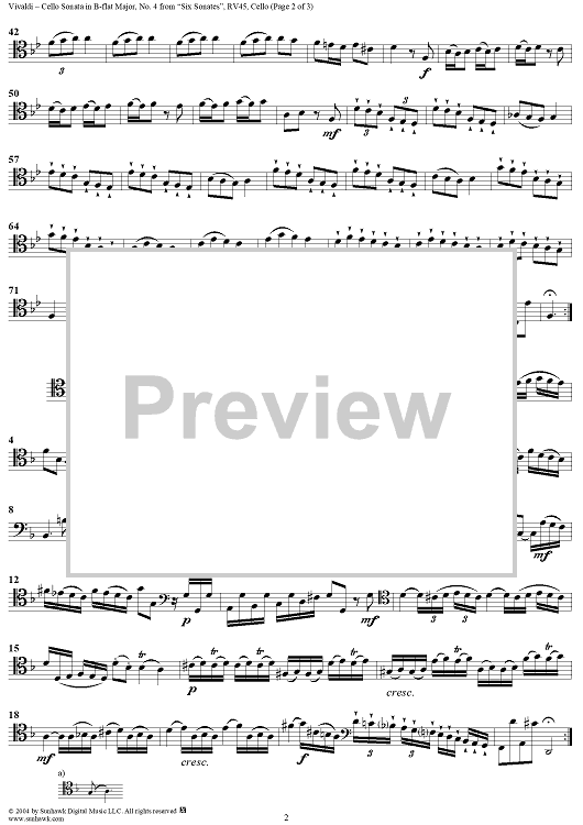 "Cello Sonata No. 4 in B-flat Major, RV45 - Cello" Sheet Music by Antonio Vivaldi