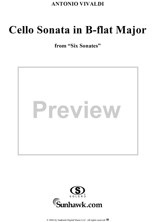 Digital Sheet Music for Cello Sonata No. 6 in B-flat Major, RV46 - Cello by Antonio Vivaldi scored for Cello/Continuo/Piano; id:296715