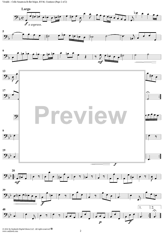 Digital Sheet Music for Cello Sonata No. 6 in B-flat Major, RV46 - Continuo by Antonio Vivaldi scored for Cello/Continuo/Piano; id:296721