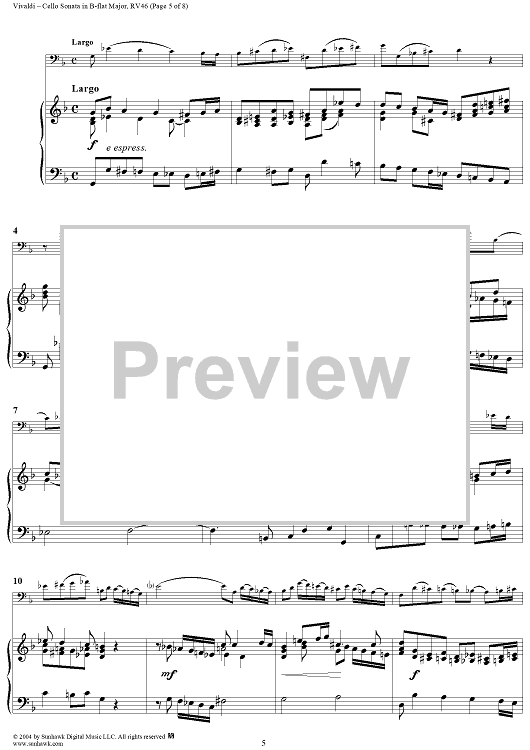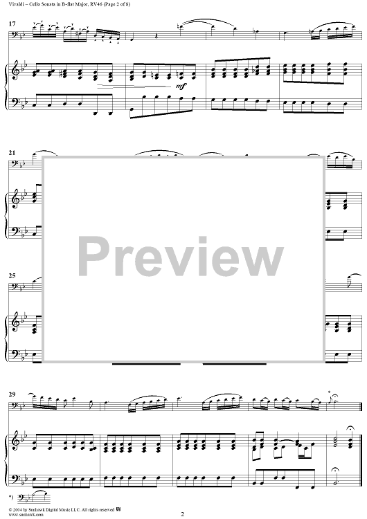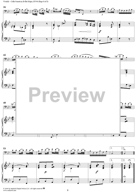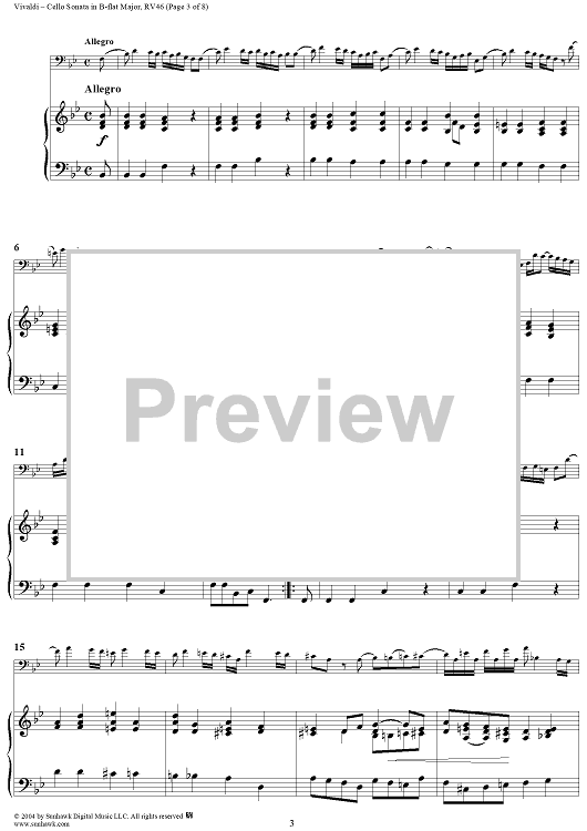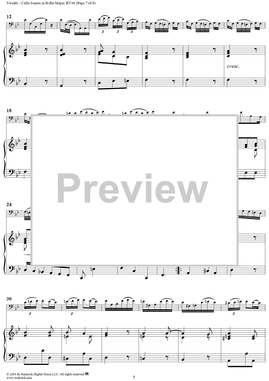 "Cello Sonata No. 6 in B-flat Major, RV46 - Piano" Sheet Music by Antonio Vivaldi