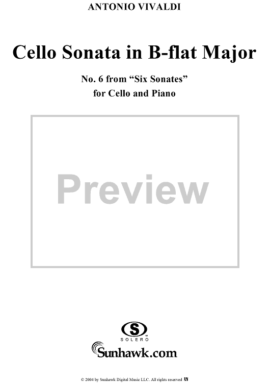 Digital Sheet Music for Cello Sonata No. 6 in B-flat Major, RV46 - Piano by Antonio Vivaldi scored for Cello/Continuo/Piano; id:296709