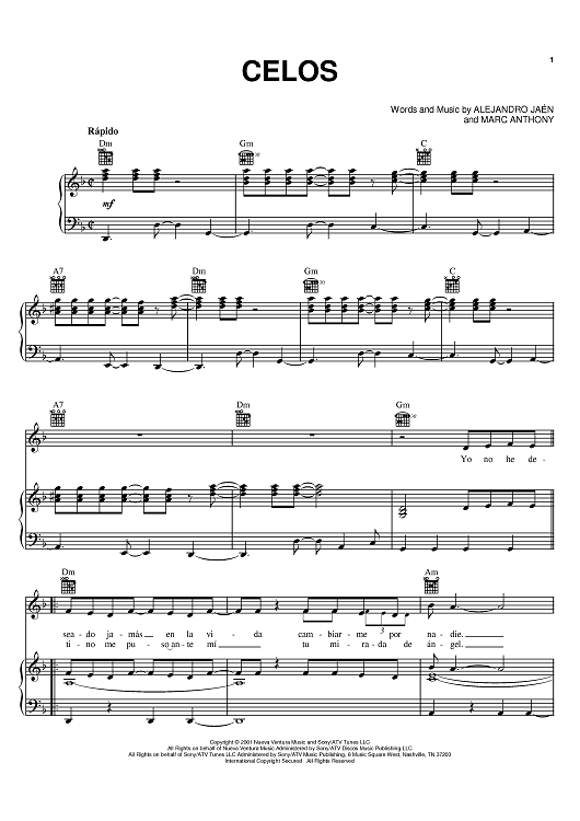 Digital Sheet Music for Celos by Alejandro Jaen, William Paz scored for Piano/Vocal/Chords; id:374754