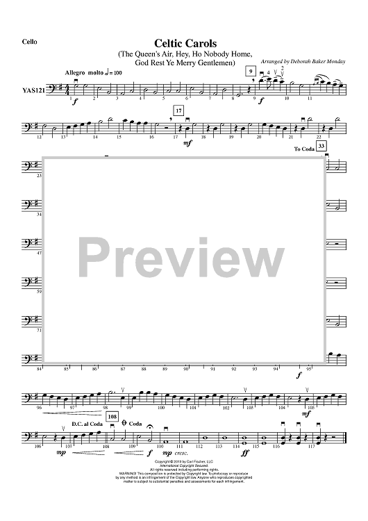 Digital Sheet Music for Celtic Carols - Cello by Various, Deborah Baker Monday scored for String Orchestra; id:435171