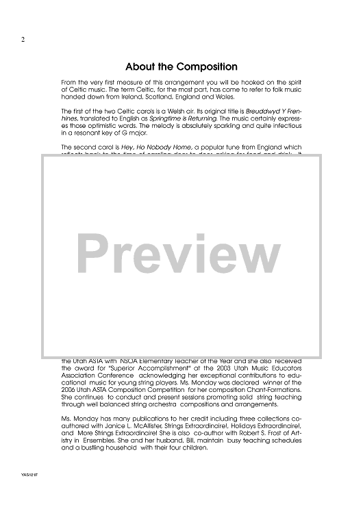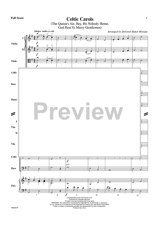 Digital Sheet Music for Celtic Carols - Score by Various, Deborah Baker Monday scored for String Orchestra; id:435166