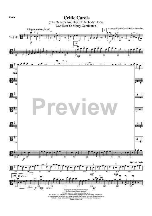 Digital Sheet Music for Celtic Carols - Viola by Various, Deborah Baker Monday scored for String Orchestra; id:435170