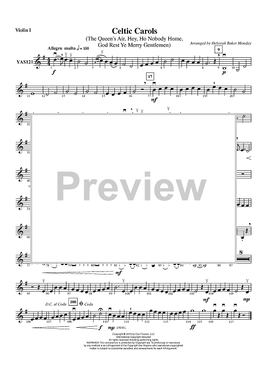 Digital Sheet Music for Celtic Carols - Violin 1 by Various, Deborah Baker Monday scored for String Orchestra; id:435167