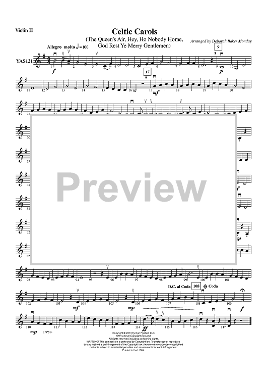 Digital Sheet Music for Celtic Carols - Violin 2 by Various, Deborah Baker Monday scored for String Orchestra; id:435168