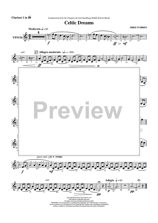 Digital Sheet Music for Celtic Dreams - Clarinet 1 in Bb by Mike Forbes scored for Concert Band; id:436401