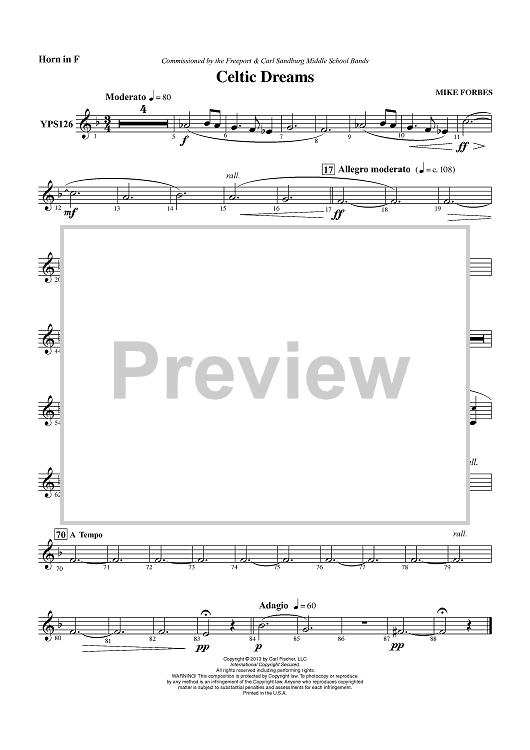 Digital Sheet Music for Celtic Dreams - Horn in F by Mike Forbes scored for Concert Band; id:436410