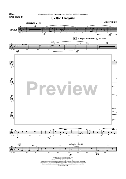Digital Sheet Music for Celtic Dreams - Oboe (Opt. Flute 2) by Mike Forbes scored for Concert Band; id:436400