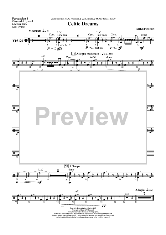 Digital Sheet Music for Celtic Dreams - Percussion 1 by Mike Forbes scored for Concert Band; id:436418