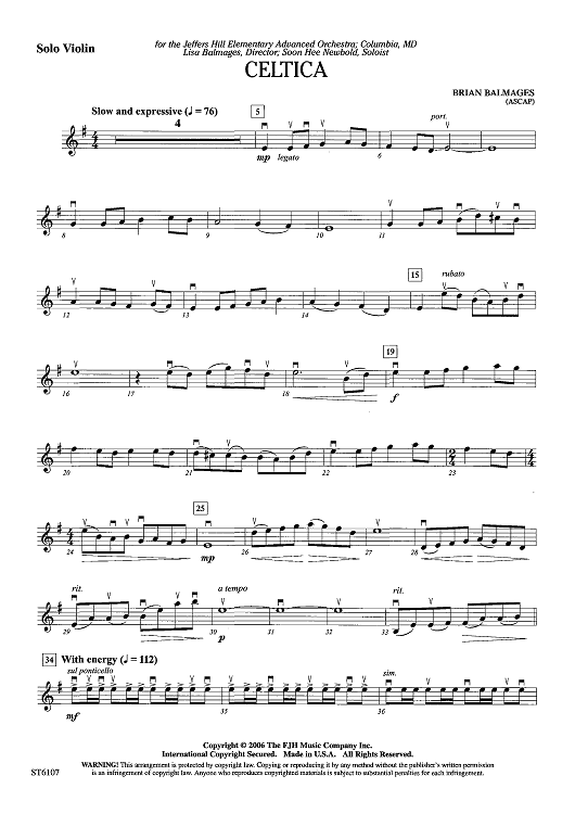 Digital Sheet Music for Celtica - Solo Violin (Grade 2) by Brian Balmages scored for String Orchestra; id:441016