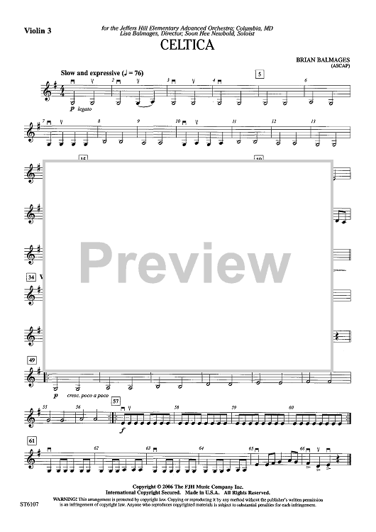 Digital Sheet Music for Celtica - Violin 3 (Viola T.C.) by Brian Balmages scored for String Orchestra; id:441019