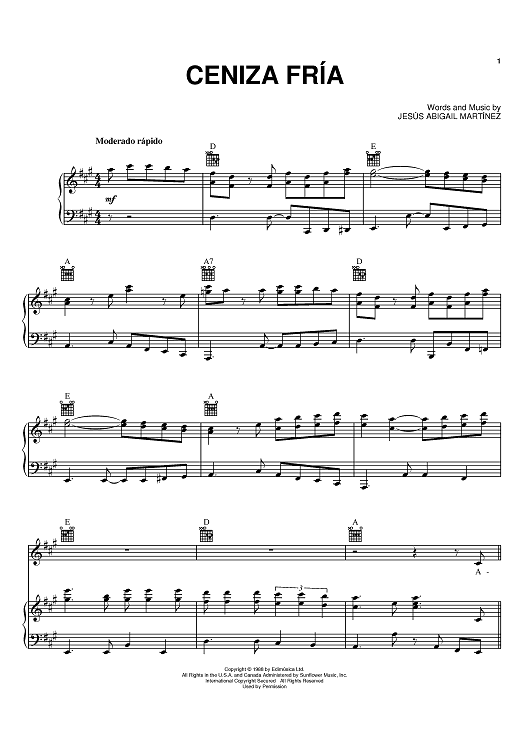 Digital Sheet Music for Ceniza Fría by Jesus Abigail Martinez scored for Piano/Vocal/Chords; id:370443
