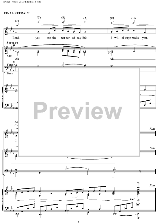Digital Sheet Music for Center of My Life - Score by Paul Inwood scored for Four-part Mixed Chorus/Piano; id:95892