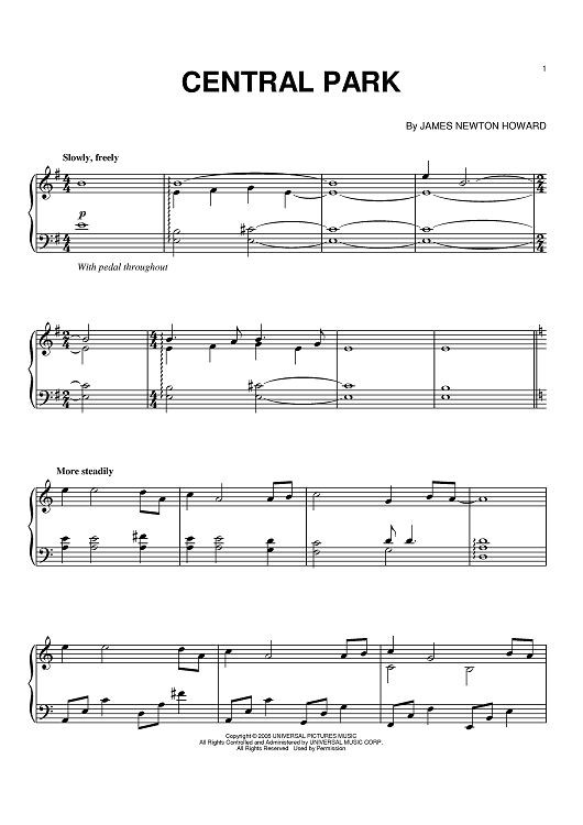 "Central Park" Sheet Music by James Newton Howard