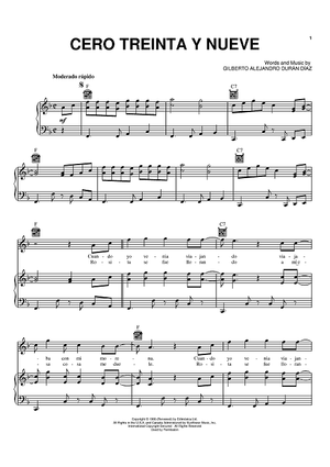 Digital Sheet Music for Cero Treinta Y Nueve by Alejo Durán scored for Piano/Vocal/Chords; id:370444