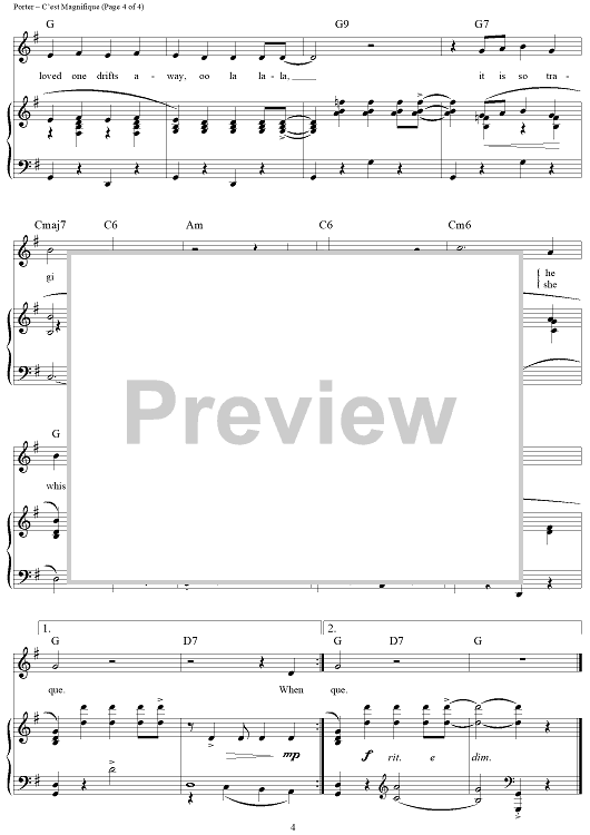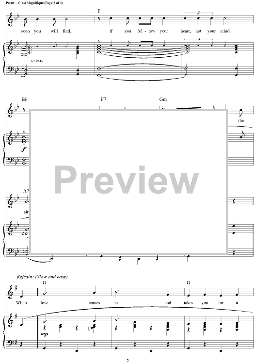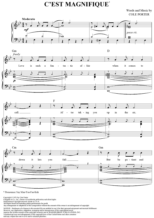 Digital Sheet Music for C'est Magnifique by Cole Porter scored for Piano/Vocal/Chords; id:314754