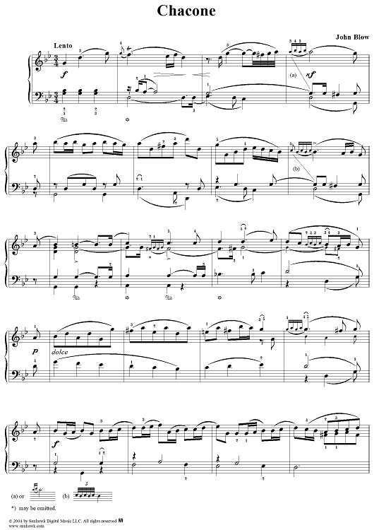 Digital Sheet Music for Chacone by John Blow scored for Piano Solo; id:295778