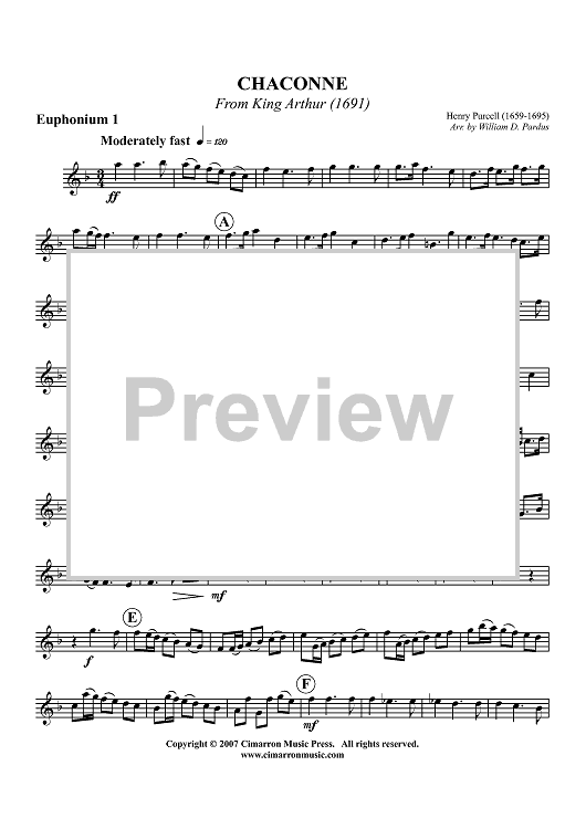 "Chaconne from King Arthur (1691) - Euphonium 1 BC/TC" Sheet Music by Henry Purcell