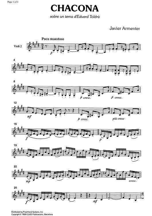 Digital Sheet Music for Chaconne on a theme of Eduar Toldrà - Violin 2 by Javier Armenter scored for String Quartet; id:353468