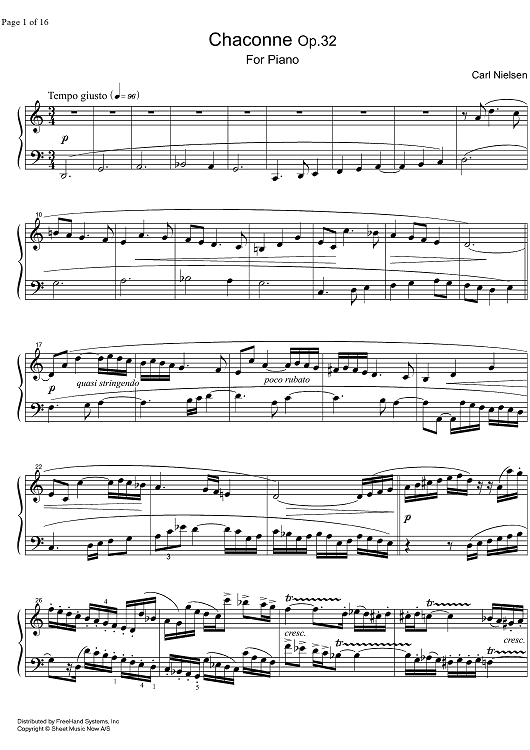 Digital Sheet Music for Chaconne Op.32 by Carl Nielsen scored for Piano Solo; id:331822