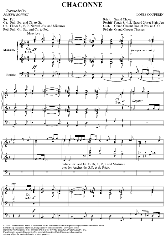 Digital Sheet Music for Chaconne by Louis Couperin, Joseph Bonnet scored for Organ Solo; id:272436