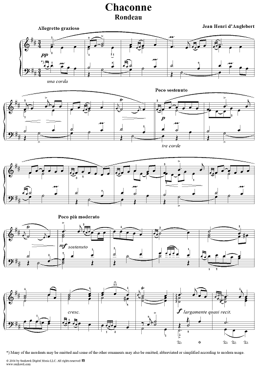 Digital Sheet Music for Chaconne (Rondeau) by Jean-Henri d'Anglebert scored for Piano Solo; id:295681
