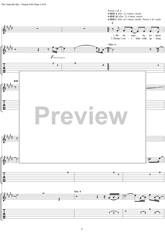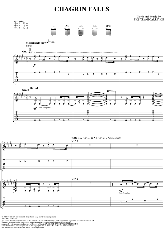 "Chagrin Falls" Sheet Music by The Tragically Hip