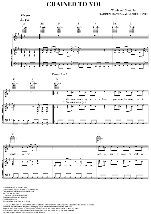 Digital Sheet Music for Chained To You by Darren Hayes, Daniel Jones, Savage Garden scored for Piano/Vocal/Chords; id:241862