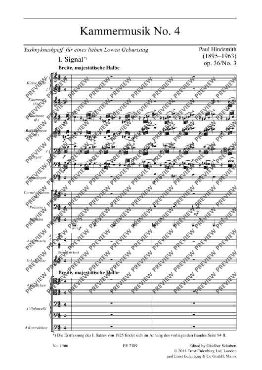 "Chamber Music No. 4 - Full Score" Sheet Music by Paul Hindemith