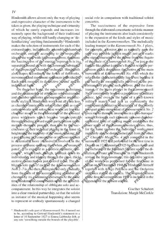 The chamber music works are among Hindemith's most successful instrumental works of the 1920s. At the world premiere of Chamber Music No. 1, the audience even demanded a repetition of the third and fourth movements. But the title is misleading: The individual pieces rather have concertante soloistic features than bow to chamber music traditions. Not least the epithet "Violin Concerto" in the title of Chamber Music No. 4 refers to that fact.