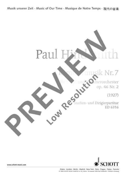 "Chamber music No. 7 - Full Score" Sheet Music by Paul Hindemith